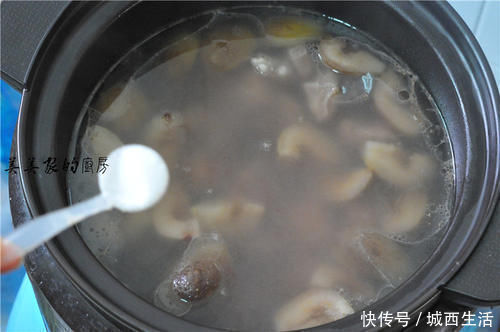 4.将排骨取出,放入新煮好的汤锅中,加几片姜片,盖上锅盖,用炖按钮将排骨炖半小时。排骨焯水后不要用冷水炖。加入热水,防止肉质缩水,这样炖出来的排骨会更加鲜嫩可口。